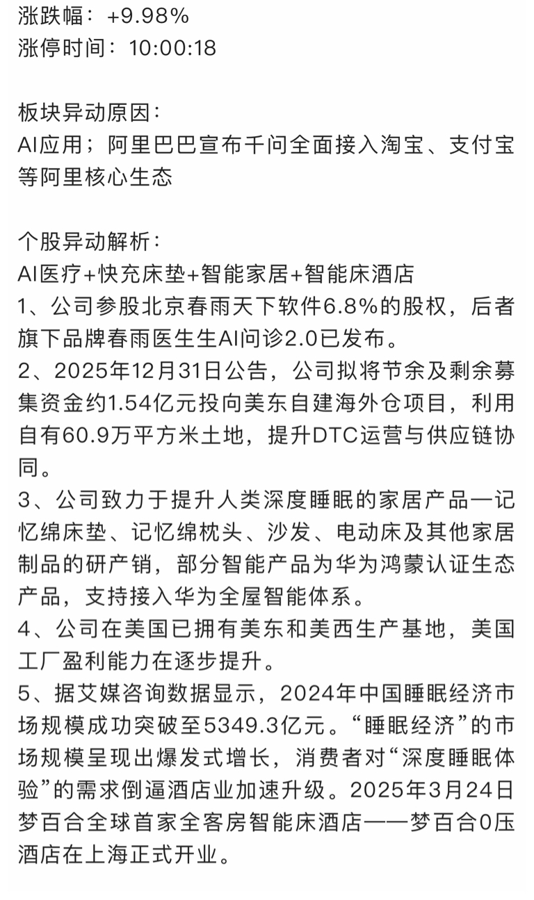 $梦百合(SH603313)$