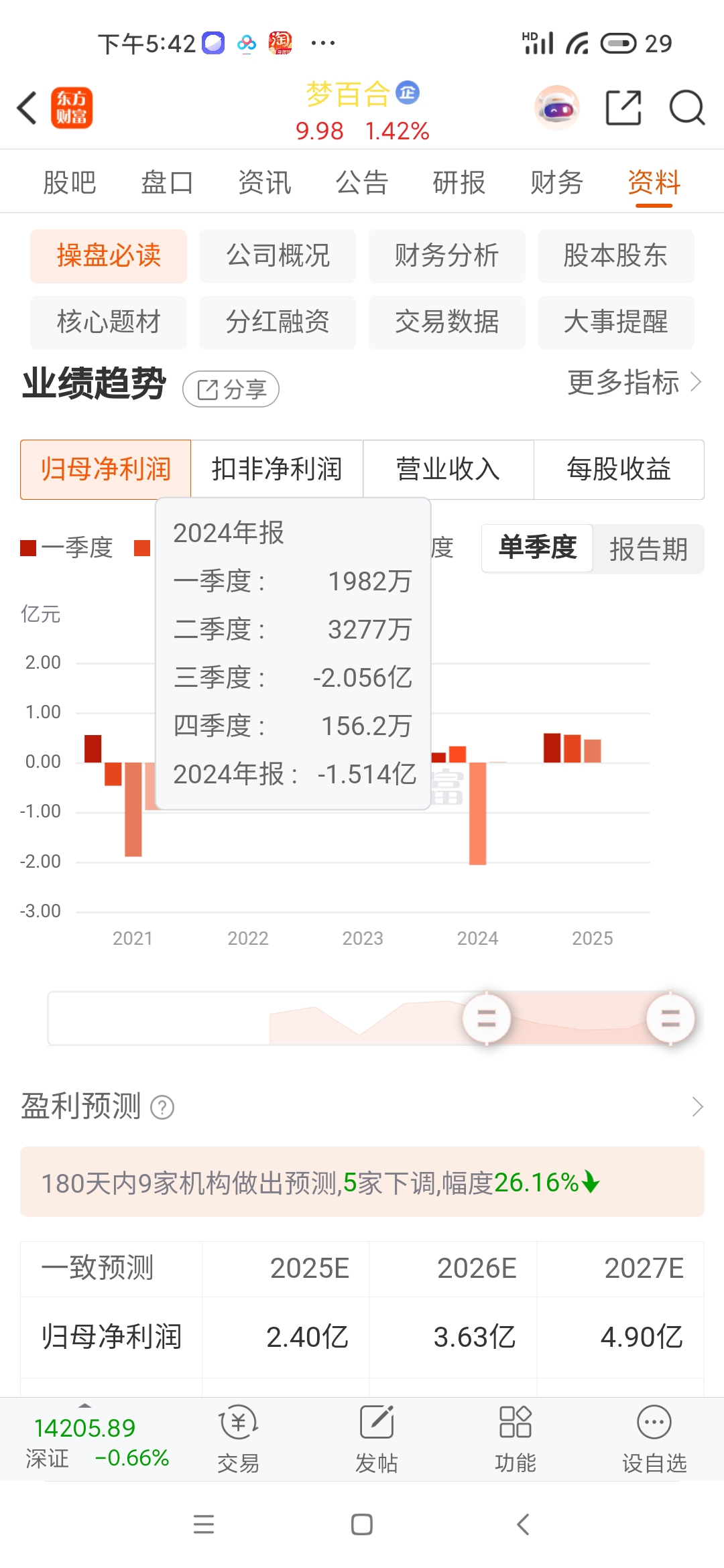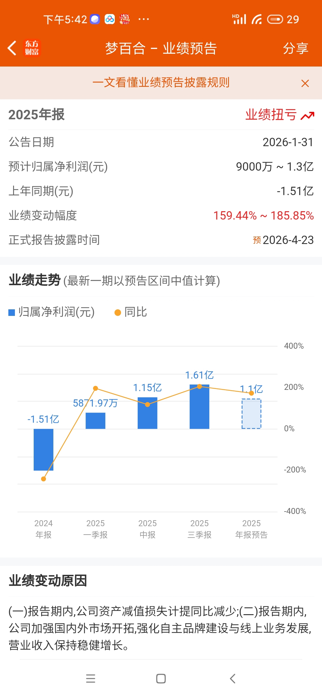 去年亏1.51亿,计提了2.73亿,实际盈利1.22亿,今年9000万~1.3亿