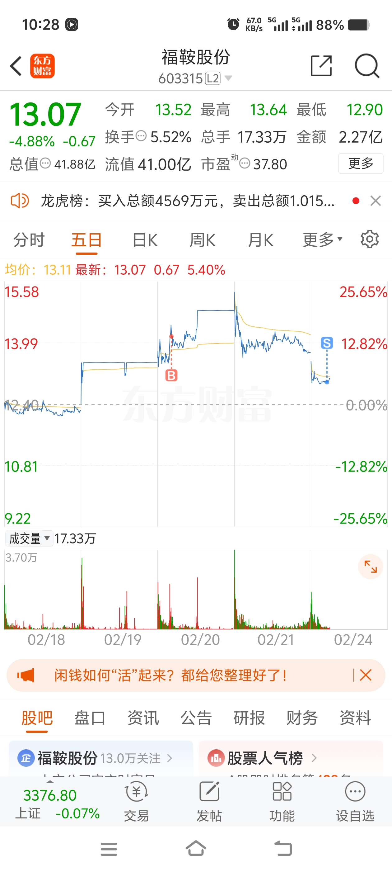 温馨提示: 1.根据《证券法》规定,禁止编造、传播虚假信息或者误导性信息,扰乱证券市场;2.用户在本社区发表的所有资料、言论等仅代表个人观点,与本网站立场无关,不对您构成任何投资建议。用户应基于自己的独立判断,自行决定证券投资并承担相应风险。《东方财富社区管理规定》