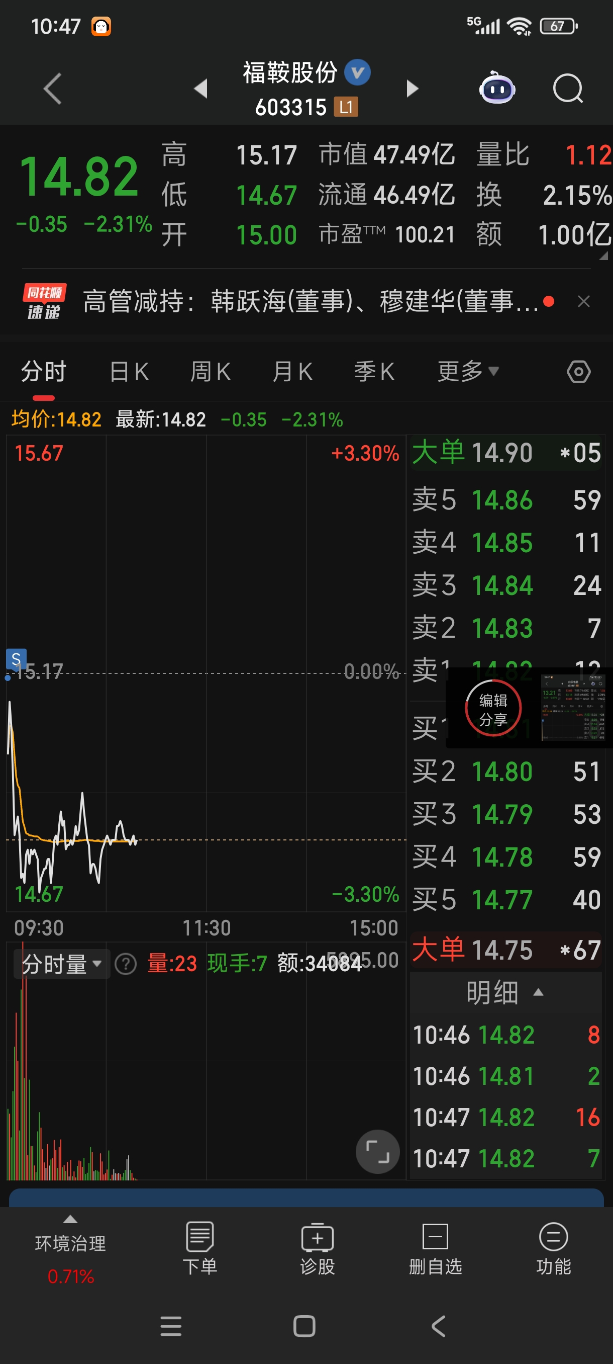 $福鞍股份(SH603315)$ 家人们,我先走了,祝留下的发财