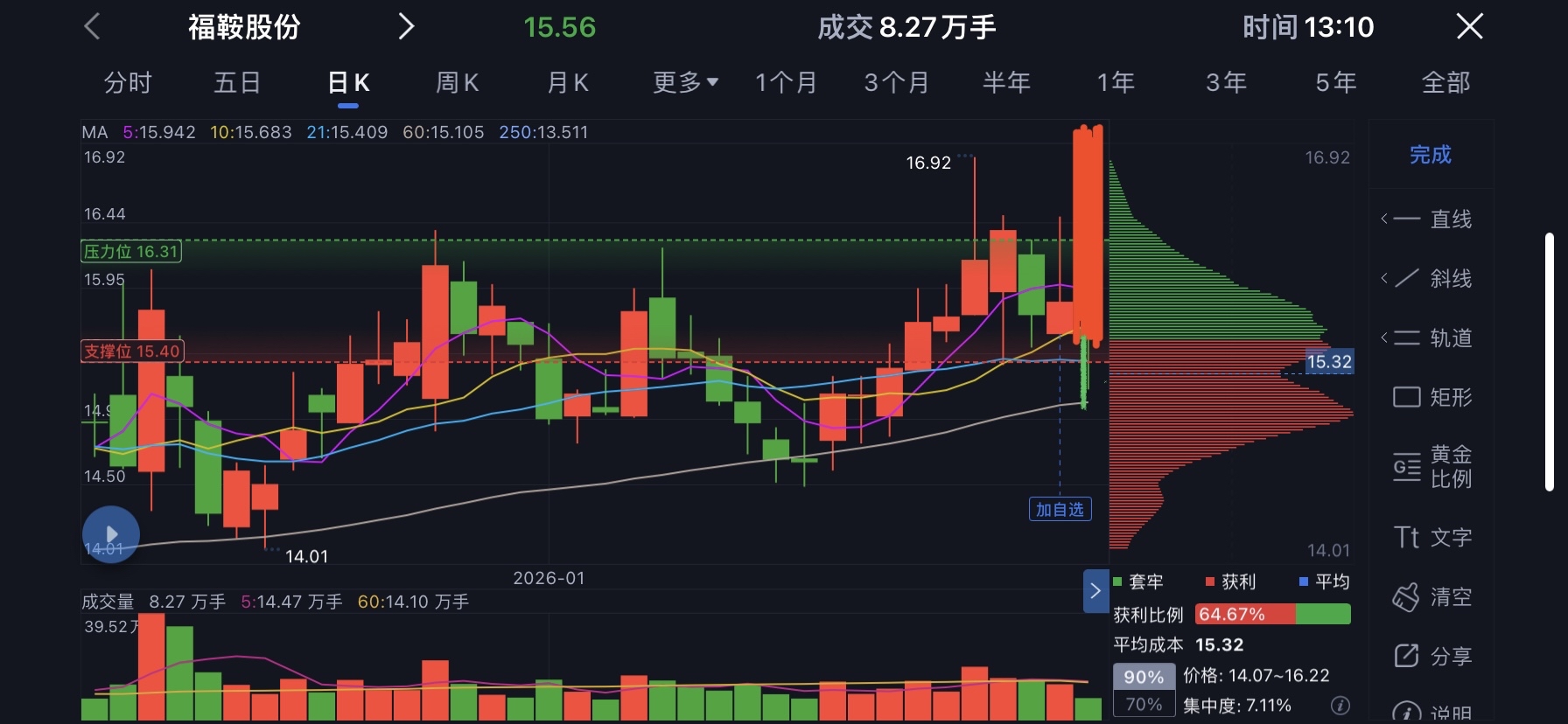 $福鞍股份(SH603315)$ 今天这样就行了