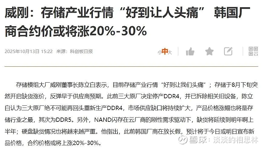 $诚邦股份(SH603316)$ 今天存储板块如兆易创新,香农芯创都表现的不尽人意,存储是个大周期,不会就这么完结,韩国厂商又要宣布涨价了,美光和西部数据盘前大涨四个点,只要晚上能稳住,诚邦明天就是高开涨停