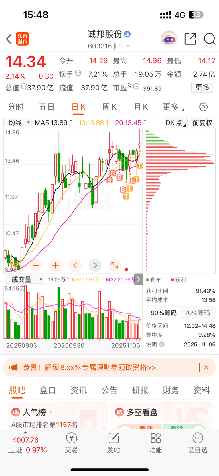 $诚邦股份(SH603316)$ 先撤了,明天再来看看有没有机会