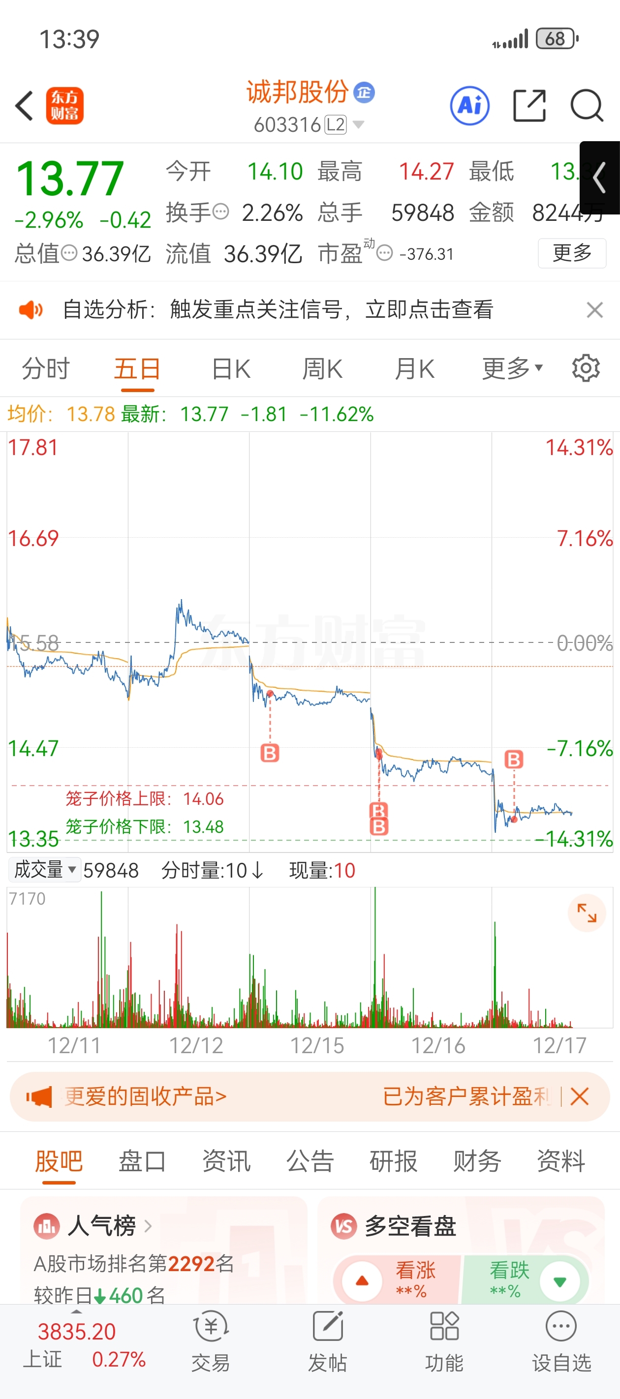 $诚邦股份(SH603316)$ 是我买崩了诚邦