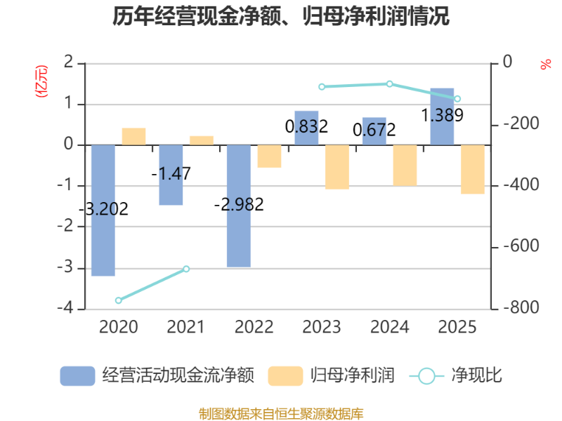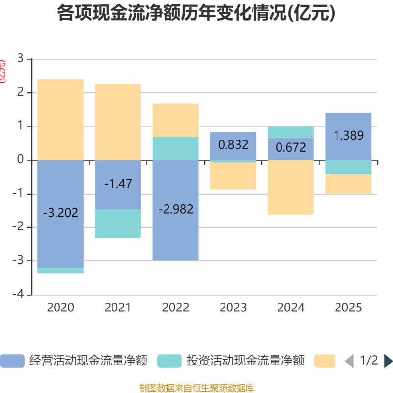 截至2025年,公司经营活动现金流净额为1.39亿元,同比增长106.57%;筹资活动现金流净额-5660.94万元,同比增加1.06亿元;投资活动现金流净额-4306.38万元,上年同期为3258万元。