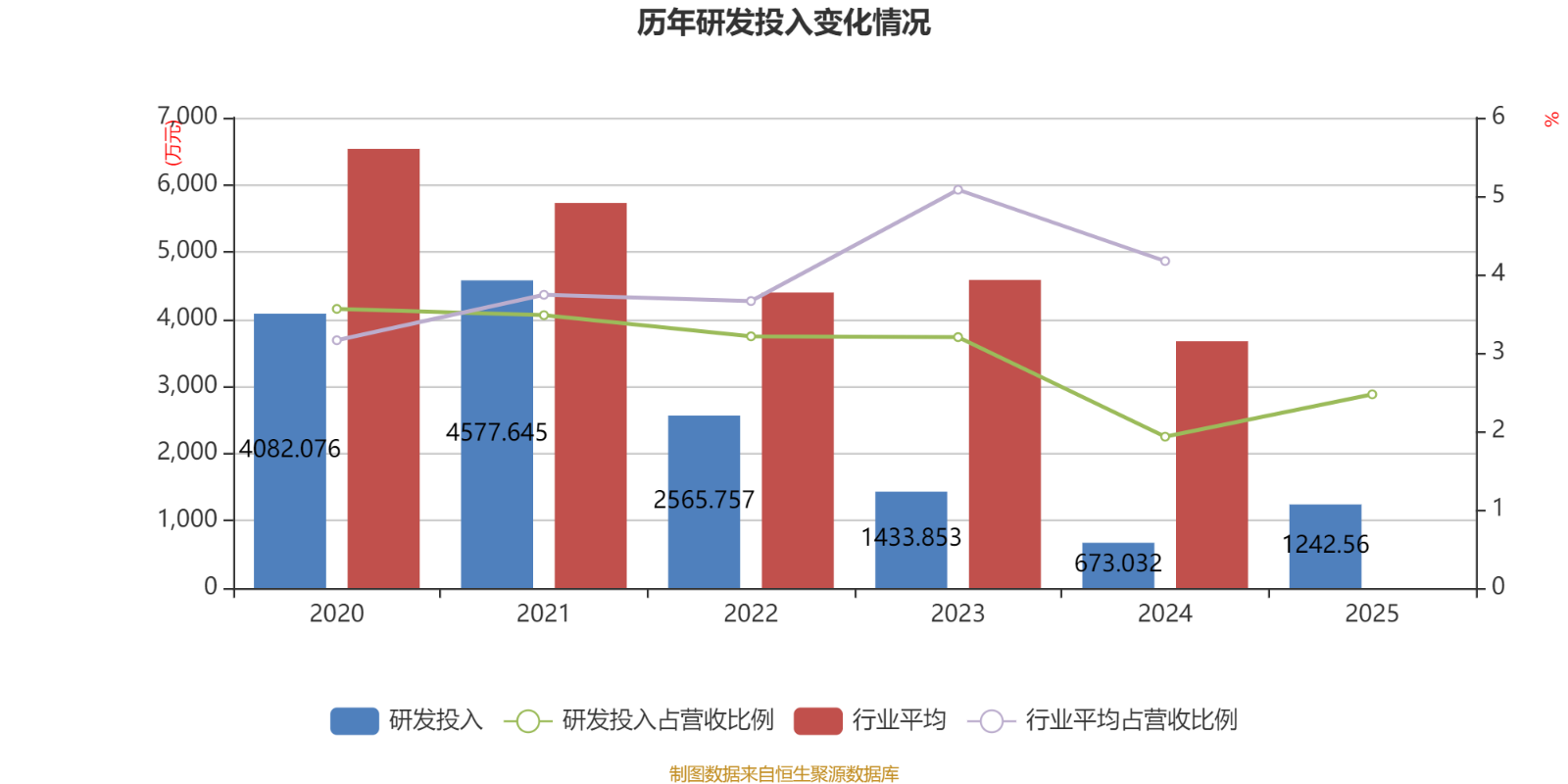 2025年全年,公司研发投入金额为1242.56万元,同比增长84.62%;研发投入占营业收入比例为2.47%,相比上年同期上升0.54个百分点。此外,公司全年研发投入资本化率为0%。