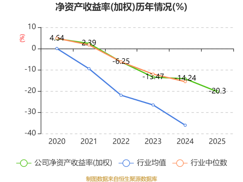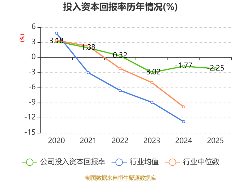 数据显示,2025年公司加权平均净资产收益率为-20.3%,较上年同期下降6.06个百分点。公司2025年投入资本回报率为-2.25%,较上年同期下降0.48个百分点。