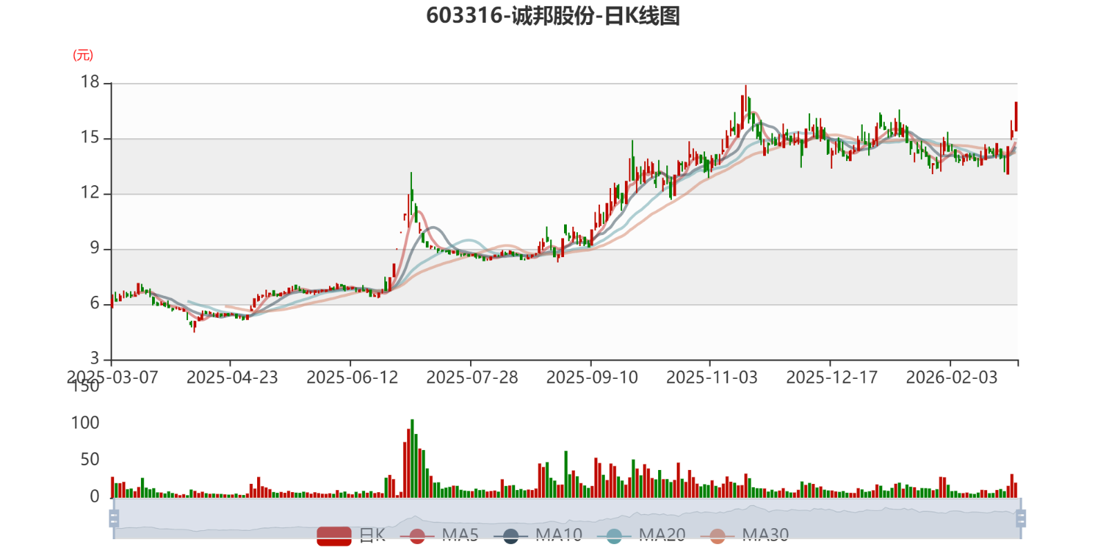 值得注意的是,中登公司数据显示,截至2026年3月6日,诚邦股份22.59%股份处于质押状态。年报显示,第一大股东方利强质押4620万股公司股份,占其全部持股的59.02%;第二大股东李敏质押1350万股公司股份,占其全部持股的59.61%。