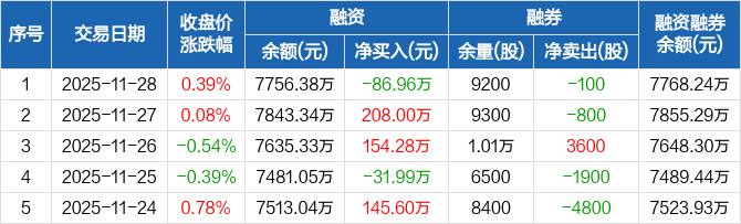 天味食品:融资净偿还86.96万元,融资余额7756.38万元(11-28)