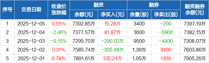 天味食品:融资净买入15.28万元,融资余额7392.85万元(12-05)