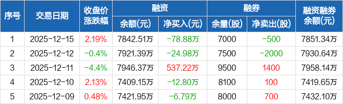 天味食品:融资净偿还78.88万元,融资余额7842.51万元(12-15)