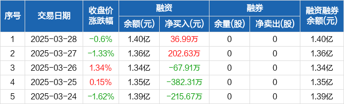 水发燃气:融资净买入36.99万元,融资余额1.4亿元(03-28)