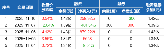 水发燃气:融资净买入258.92万元,融资余额1.42亿元(11-10)