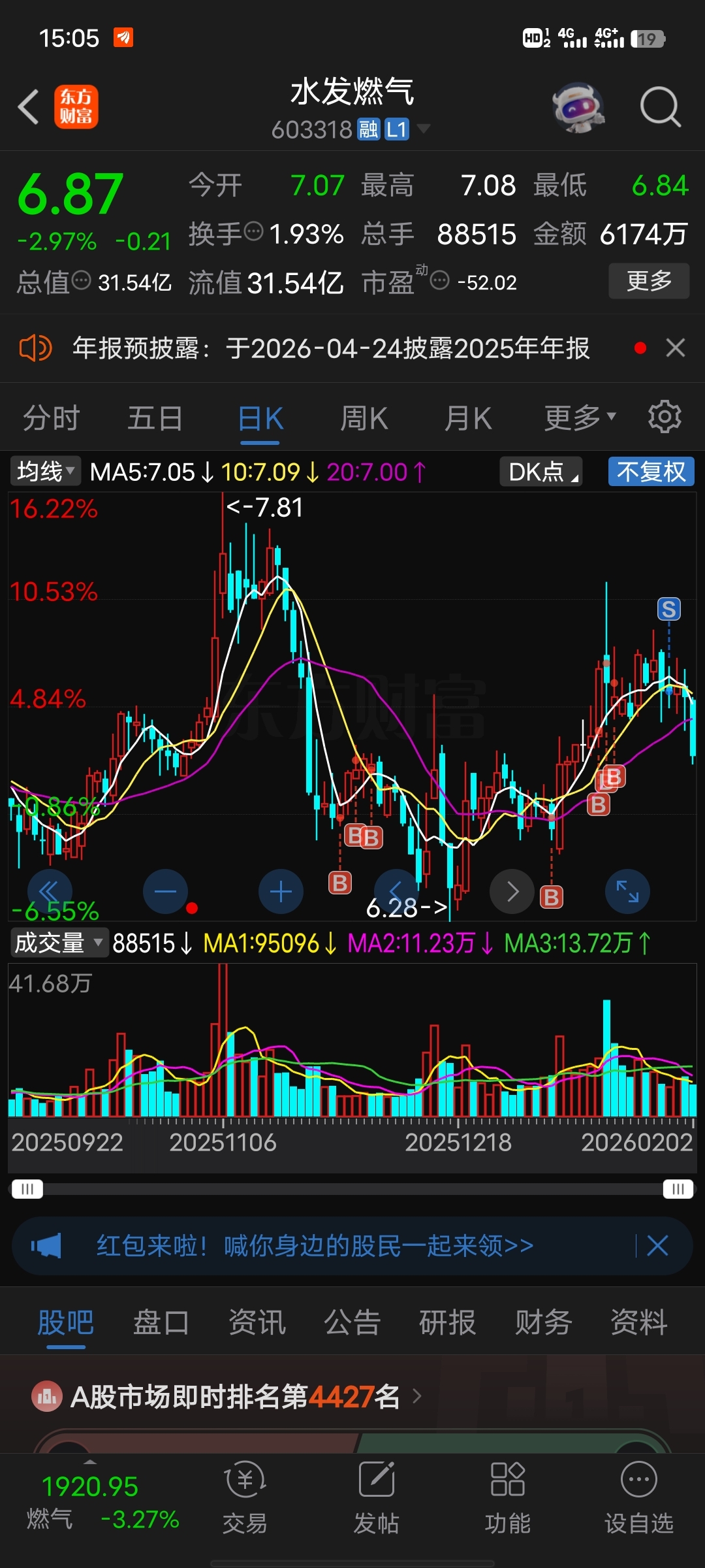 $水发燃气(SH603318)$ 清仓过年了