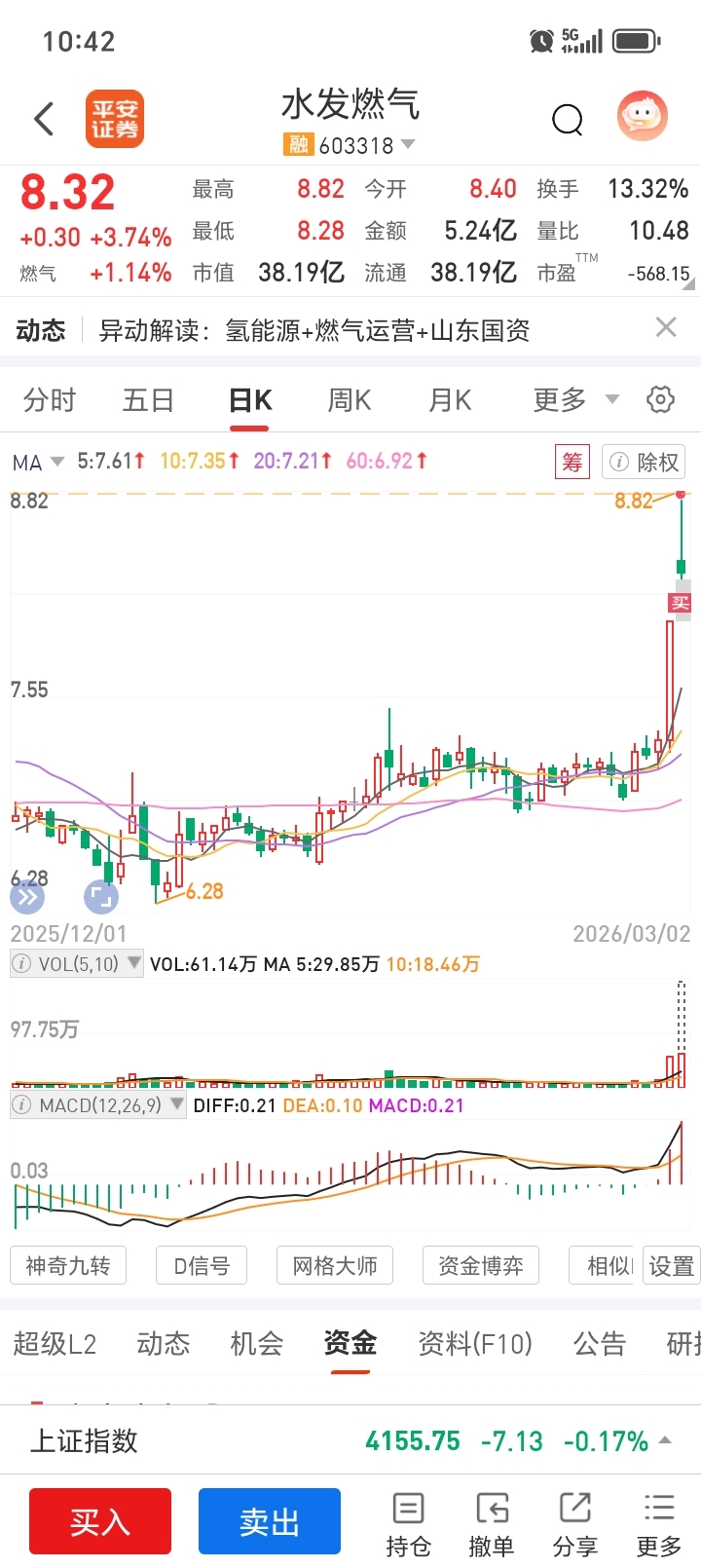 $水发燃气(SH603318)$ 点的半仓,过一会一看全仓,卧槽,啥问题