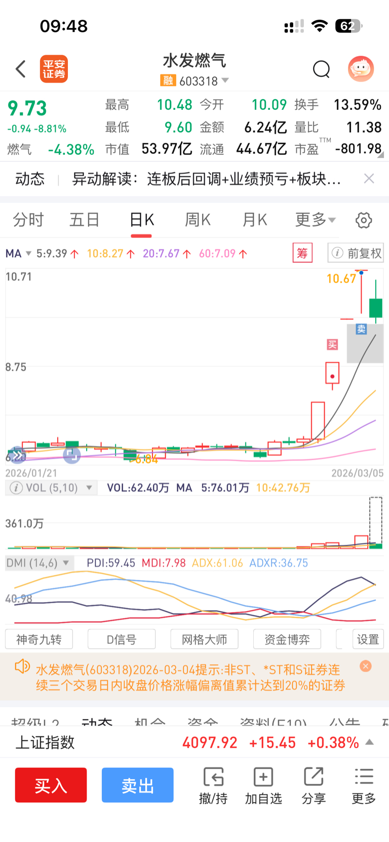 $水发燃气(SH603318)$ 只要跑得快,跌停就追不上我