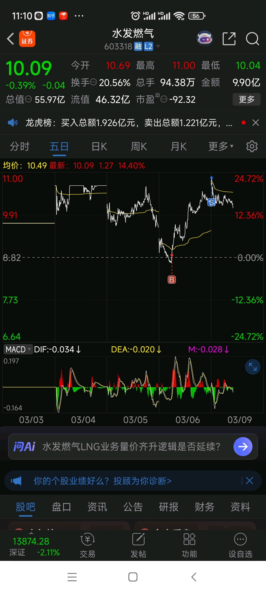 $水发燃气(SH603318)$ 博一个套利成功,出货,删自选。今天继续加仓算力租赁和持仓电力