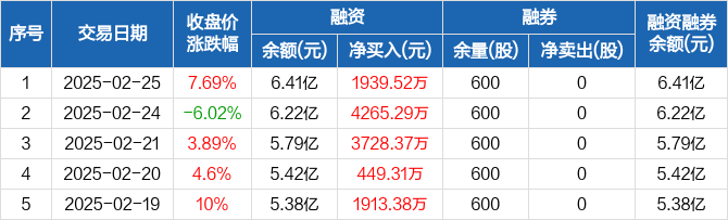 湘油泵:融资余额6.41亿元,创历史新高(02-25)