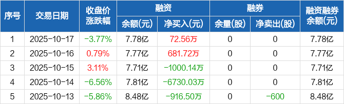 美湖股份:融资净买入72.56万元,融资余额7.78亿元(10-17)
