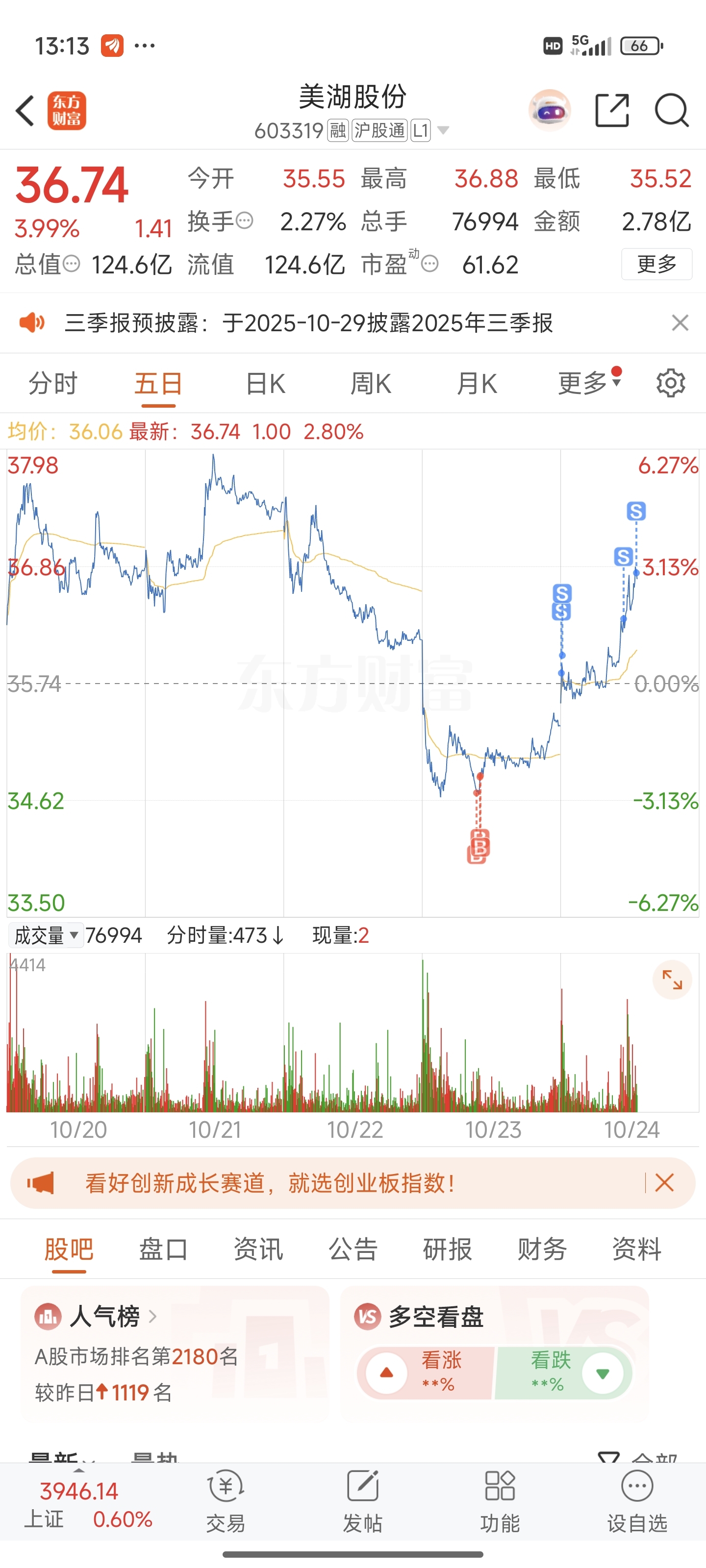 $美湖股份(SH603319)$ 感谢湖湖,回血了主打一个不贪,希望一卖就拉