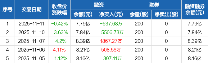 美湖股份:融资净偿还537.68万元,融资余额7.79亿元(11-11)
