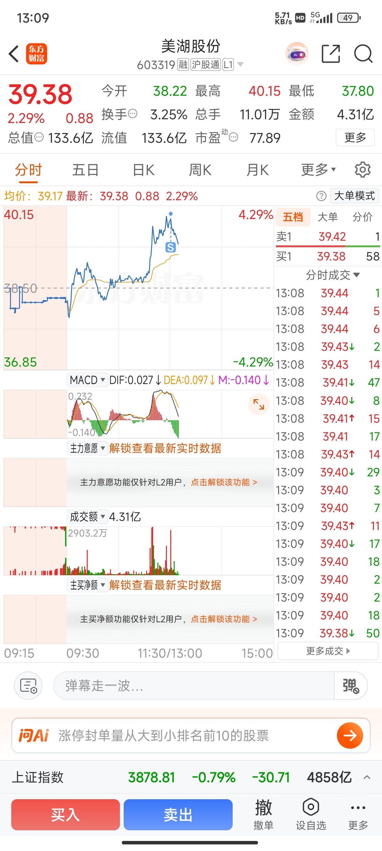 $美湖股份(SH603319)$ 拉上40。全卖给主力,一秒都不带迟疑的