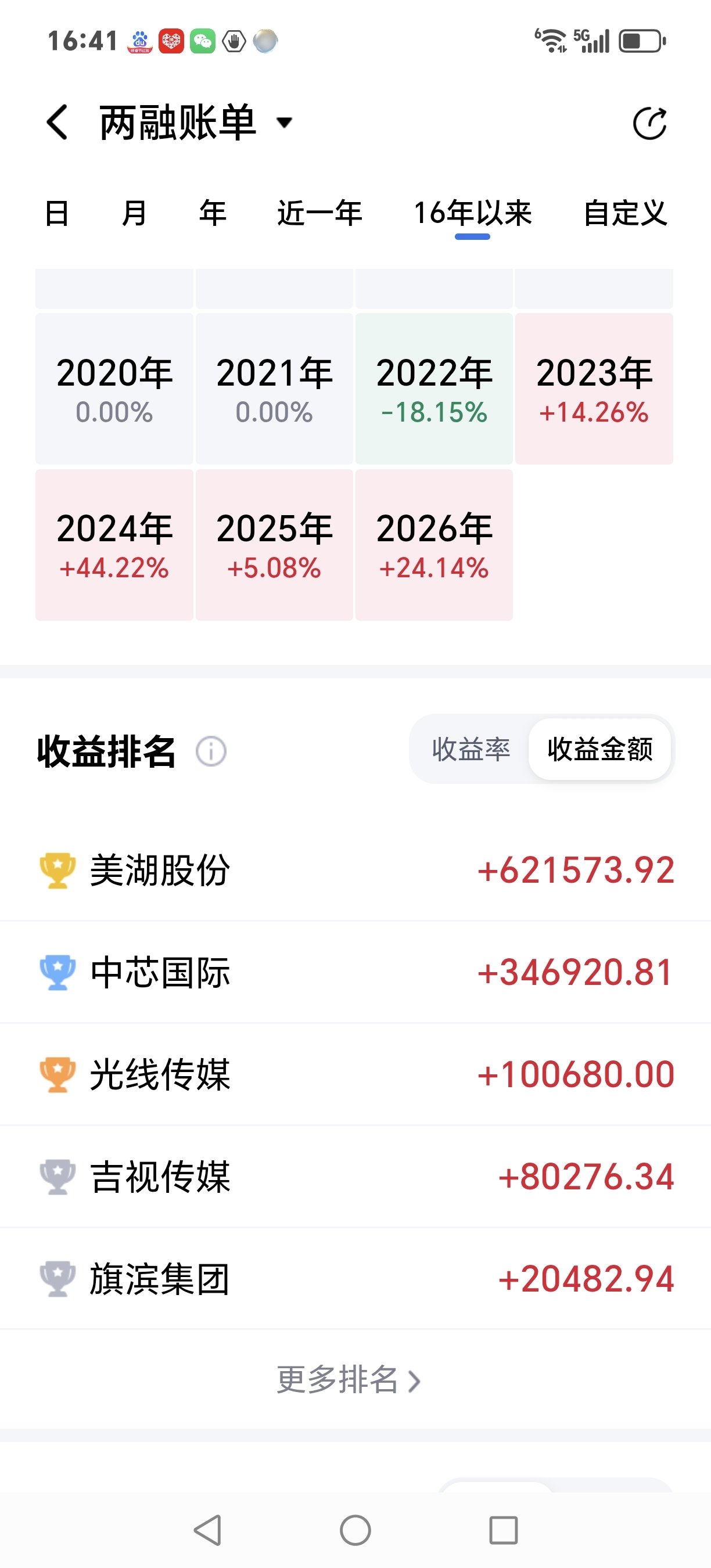 $美湖股份(SH603319)$ 我在美湖还是挣了钱的,二融账户16年以来盈利60多万。普通账户盈利30万。