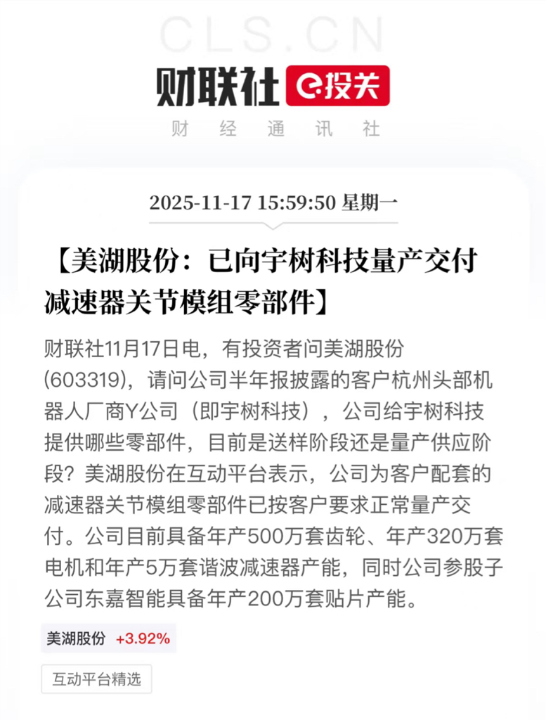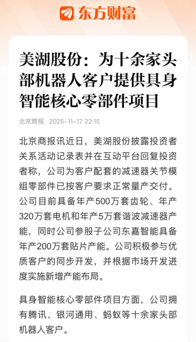 美湖股份同时给特斯拉、宇树,银河通用、富士康、赛力斯供应机器人核心部件,上市公司