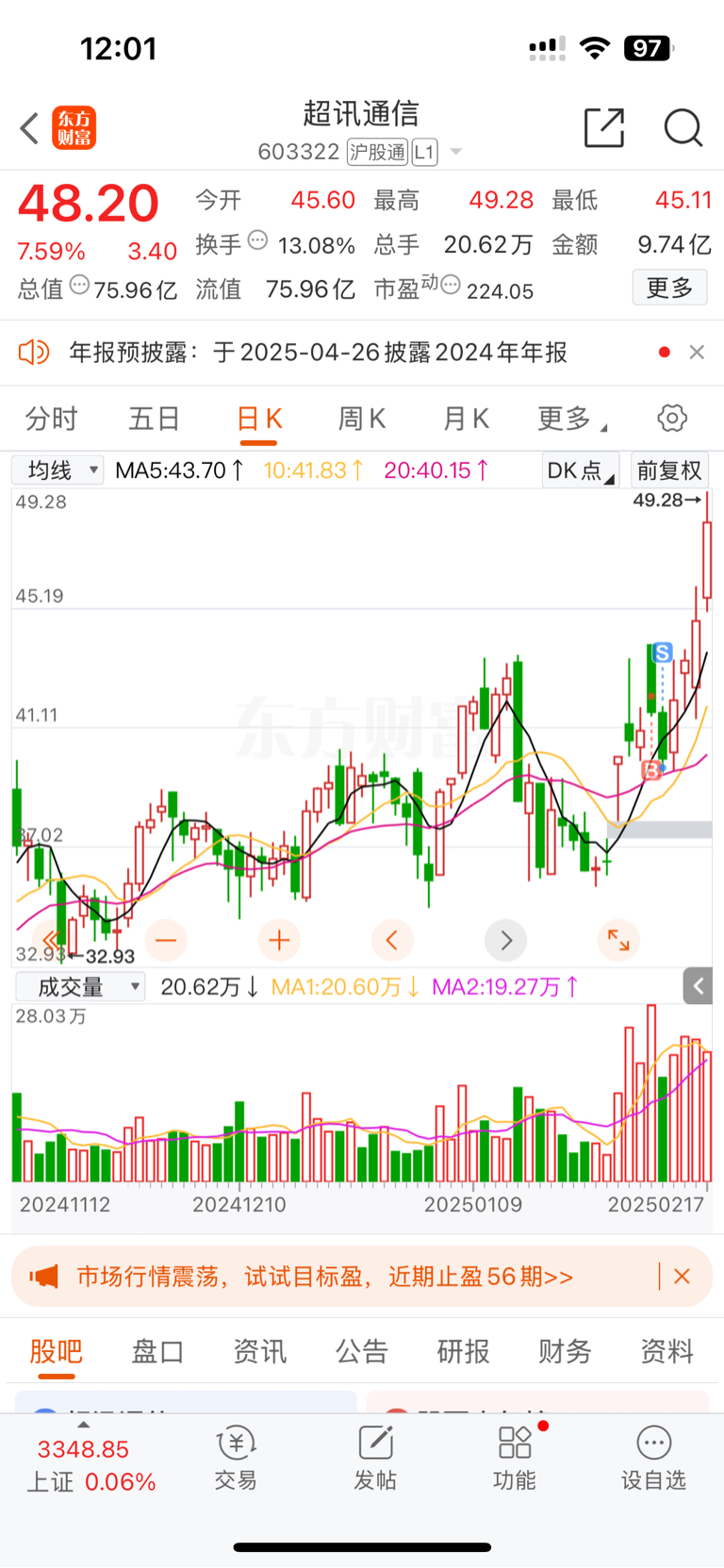 多交流技术。恭喜恭喜恭喜发财 //@股友26169l372T :中贝通信还会大涨。//@股友26169l372T :002533,002048,000949,赤峰黄金。你可以三成仓小试牛刀。就算亏点也别怕//@股友26169l372T :买000949......另外你可以关注002886//@股友26169l372T :咋不见你出来聊//@股友26169l372T :刚买了002913//@股友26169l3...