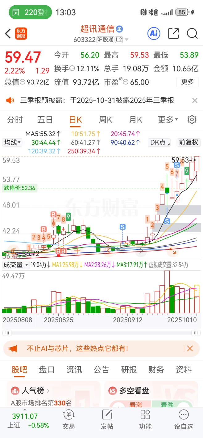 $超讯通信(SH603322)$ 超讯的庄是真的好啊,和而泰和你原来各一半,卖了你买了他,后悔不已啊