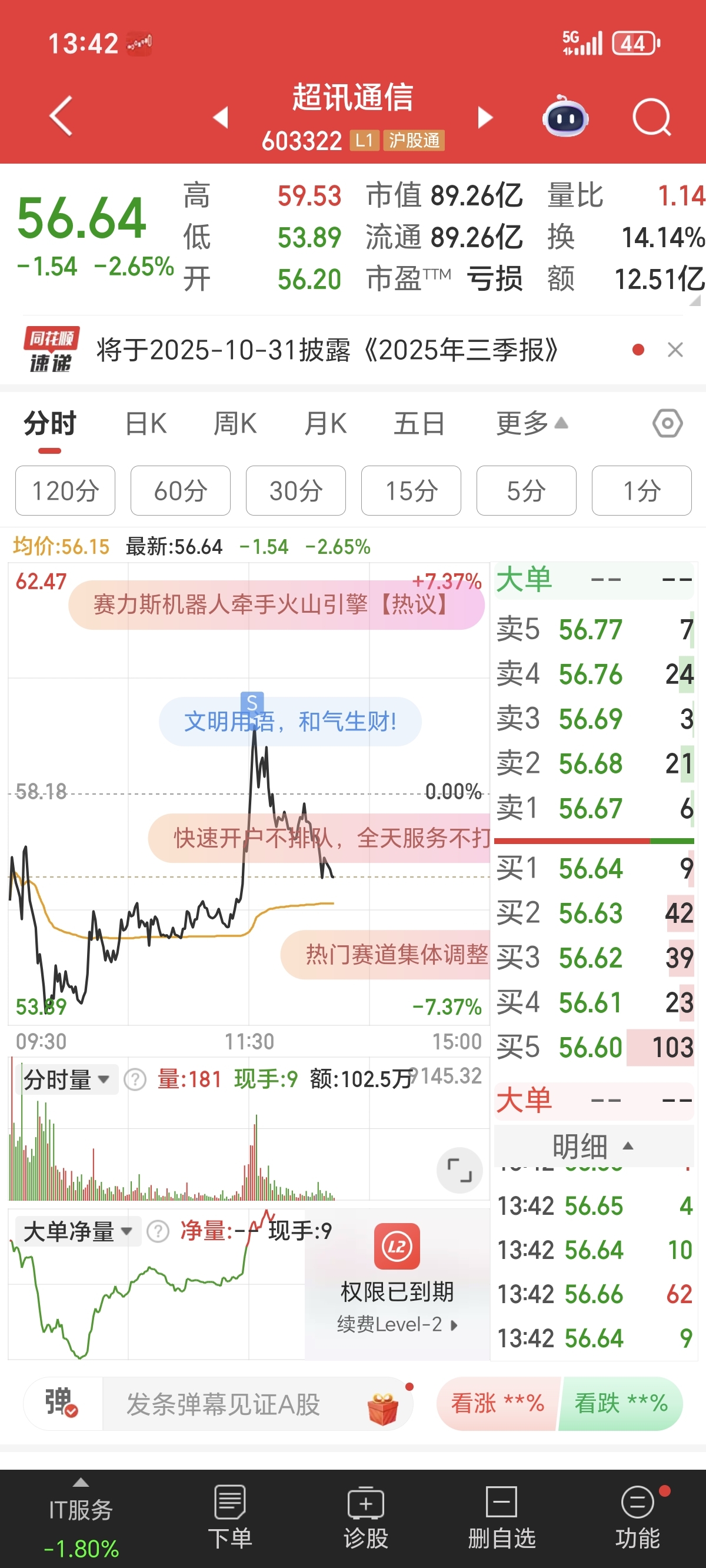$超讯通信(SH603322)$ 卖了一半,尾盘接回一部分