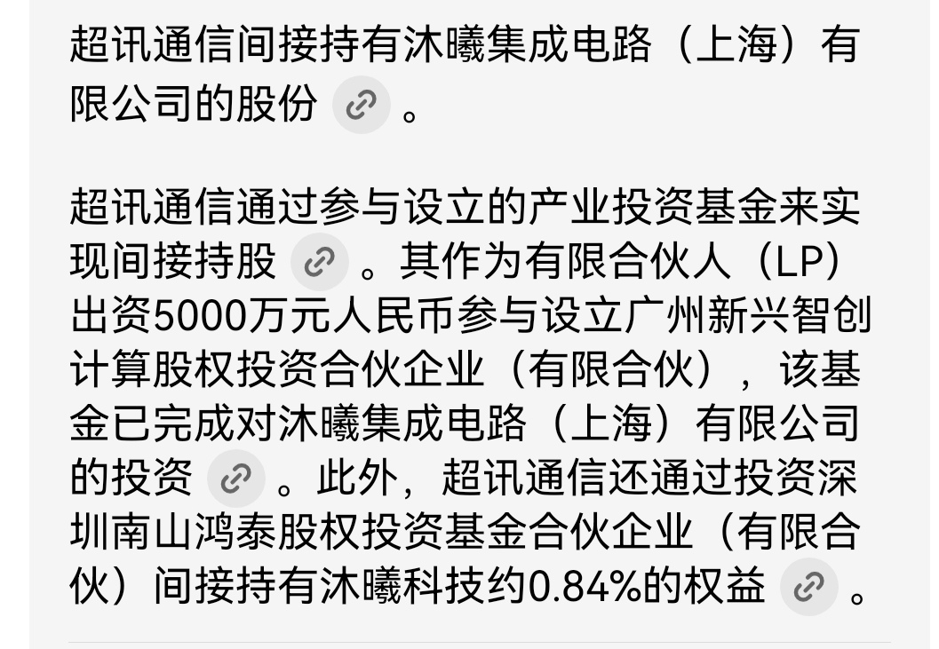 $超讯通信(SH603322)$ 大家去帮忙证实一下超讯是否真的间接持有沐曦股份