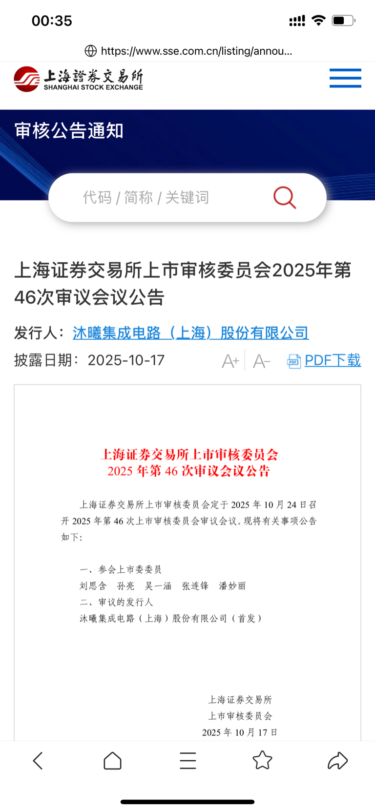 $超讯通信(SH603322)$ 如约而至!沐曦集成10月24上会。