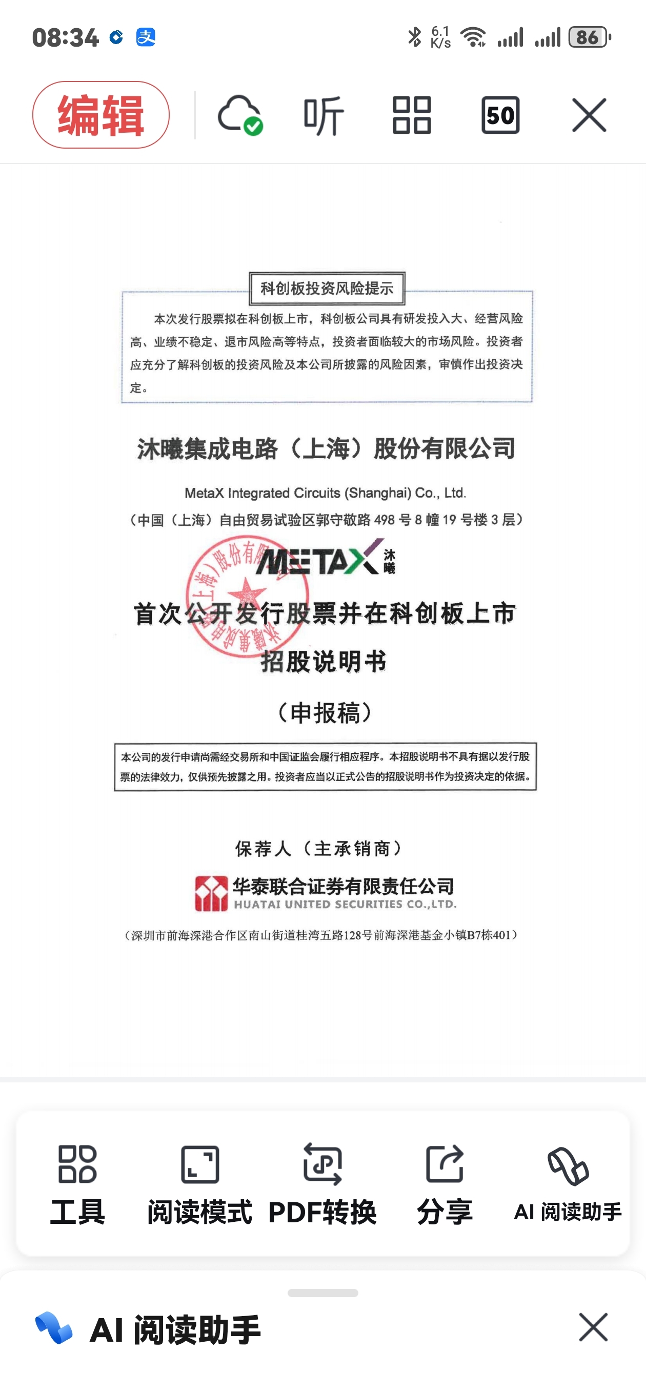 沐曦招股说明书