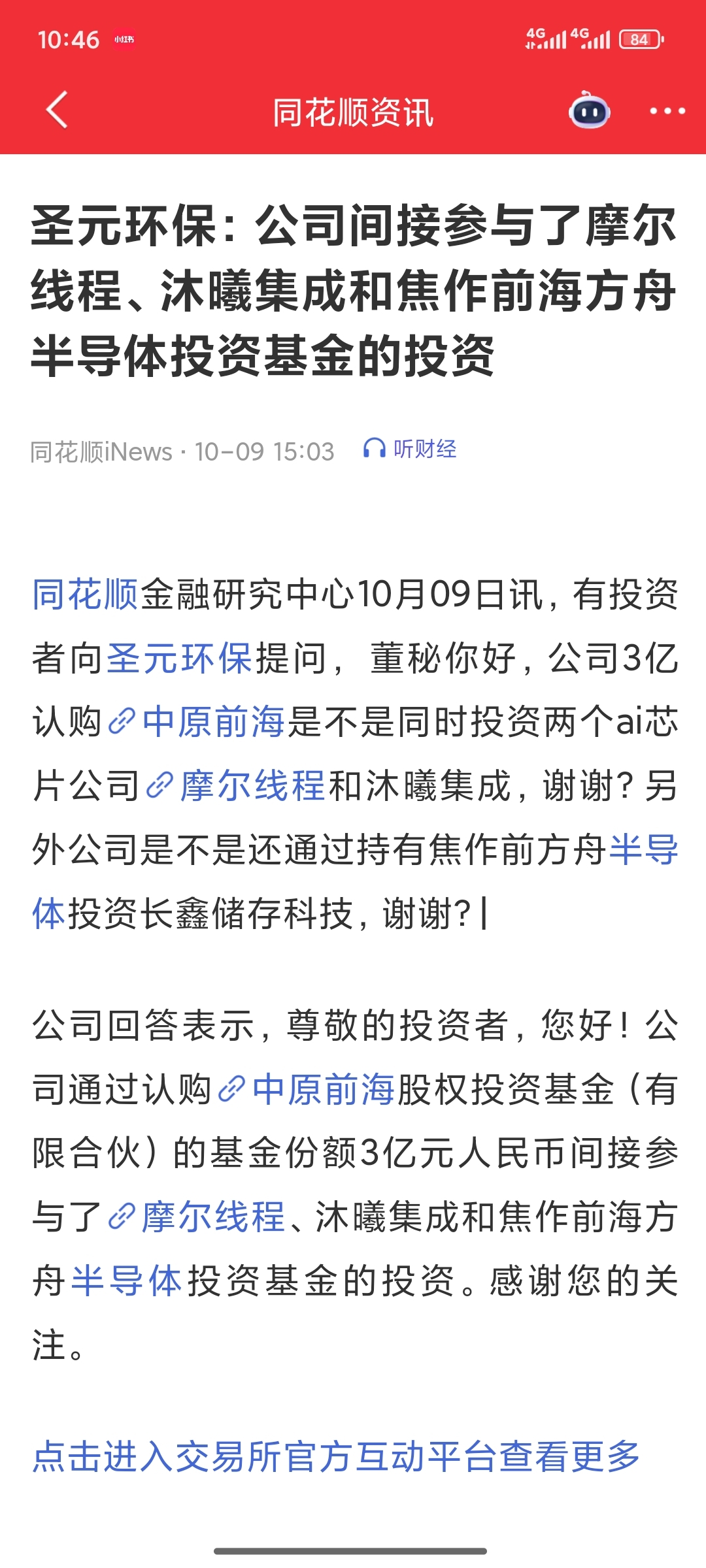 圣元环保,投资基金间接参股,摩尔线程+沐曦集成+长鑫科技。一个基金投了三家牛逼公