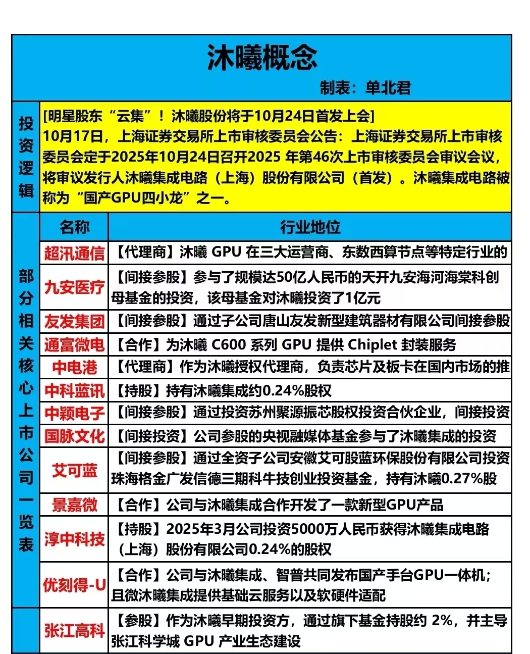 $超讯通信(SH603322)$ $通富微电(SZ002156)$ $中电港(SZ001287)$ 沐曦半导体概念大全