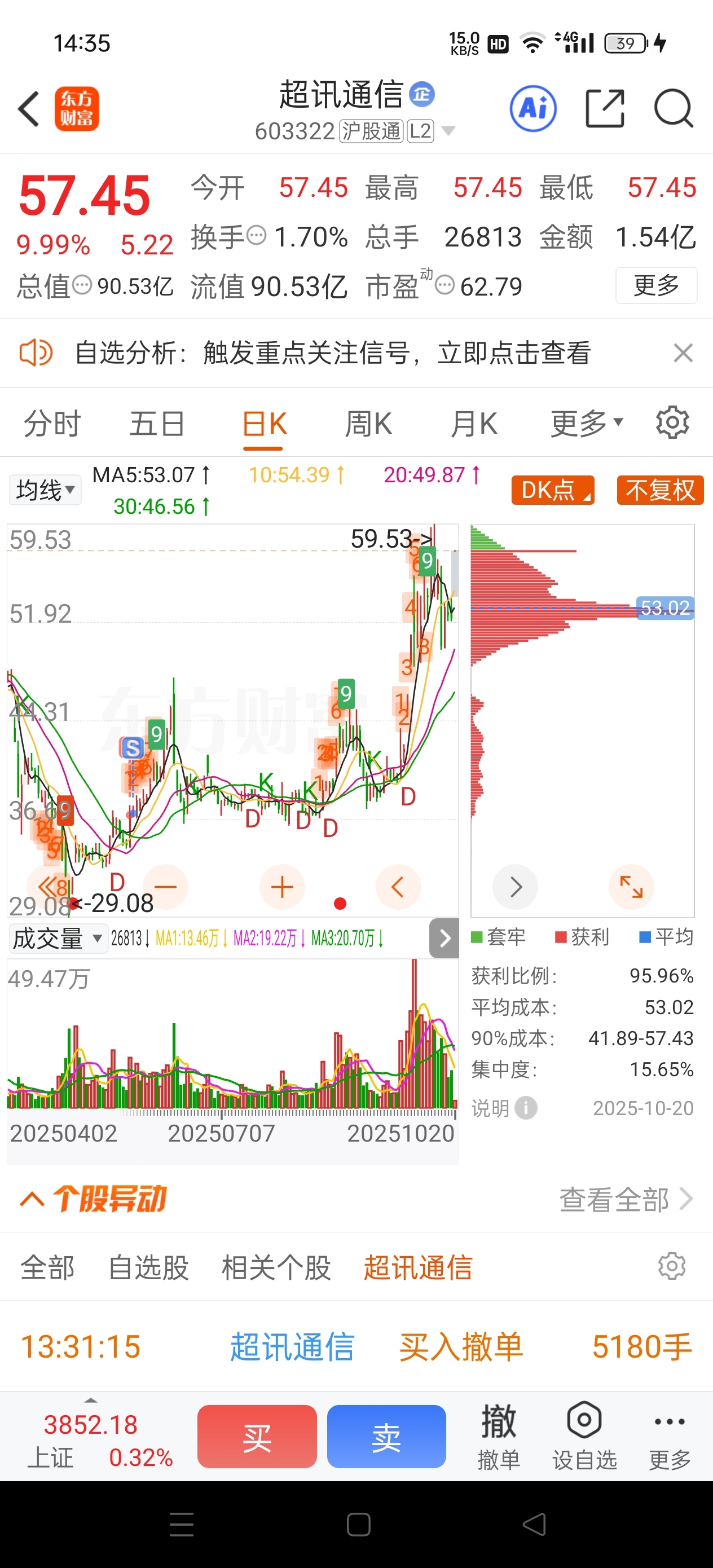 $超讯通信(SH603322)$ 无话可说