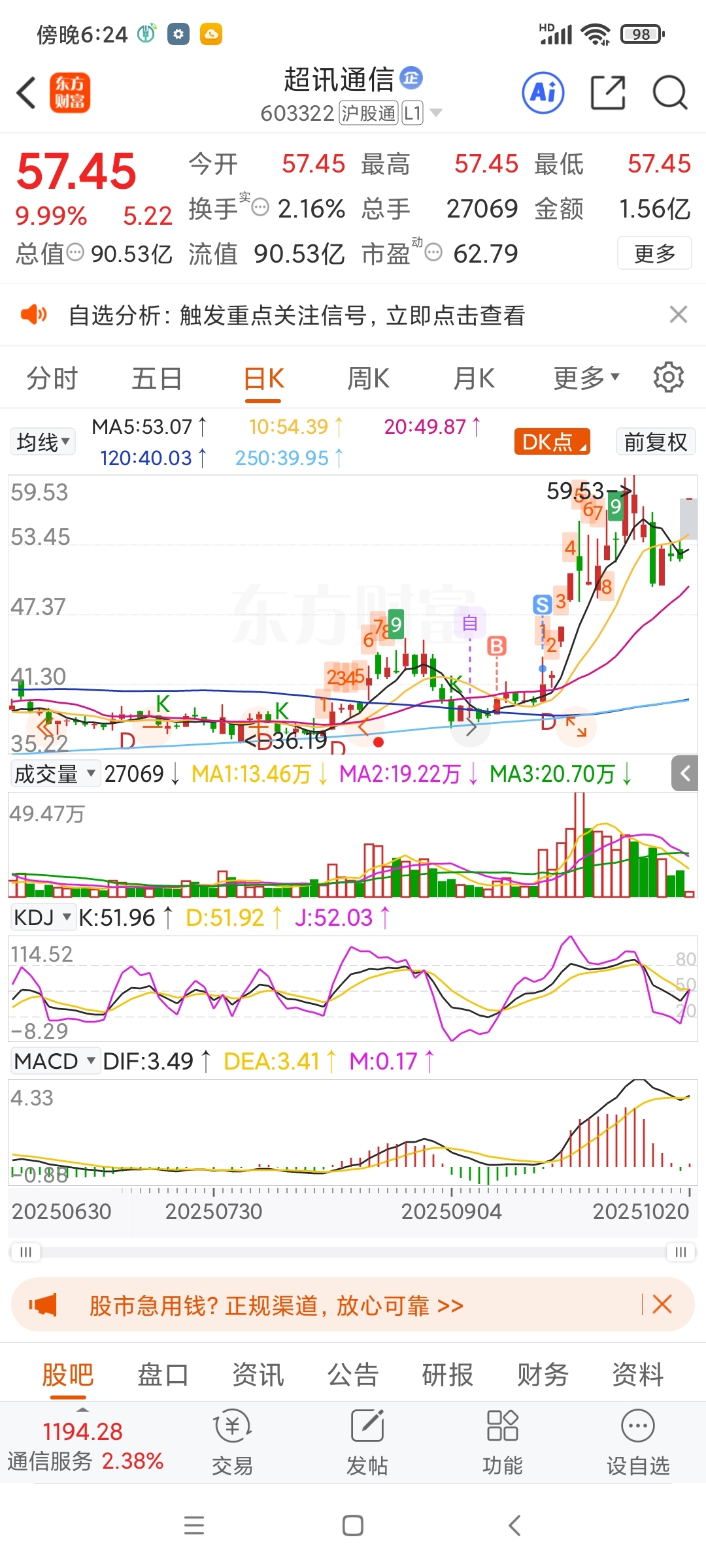 $超讯通信(SH603322)$ 差点发财