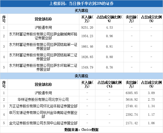 沪股通现身龙虎榜,超讯通信换手率达22.89%(10-21)