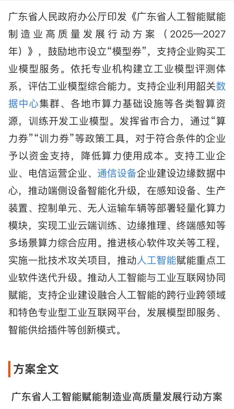 广东:支持工业智能算力应用培育工业软件和智能装备