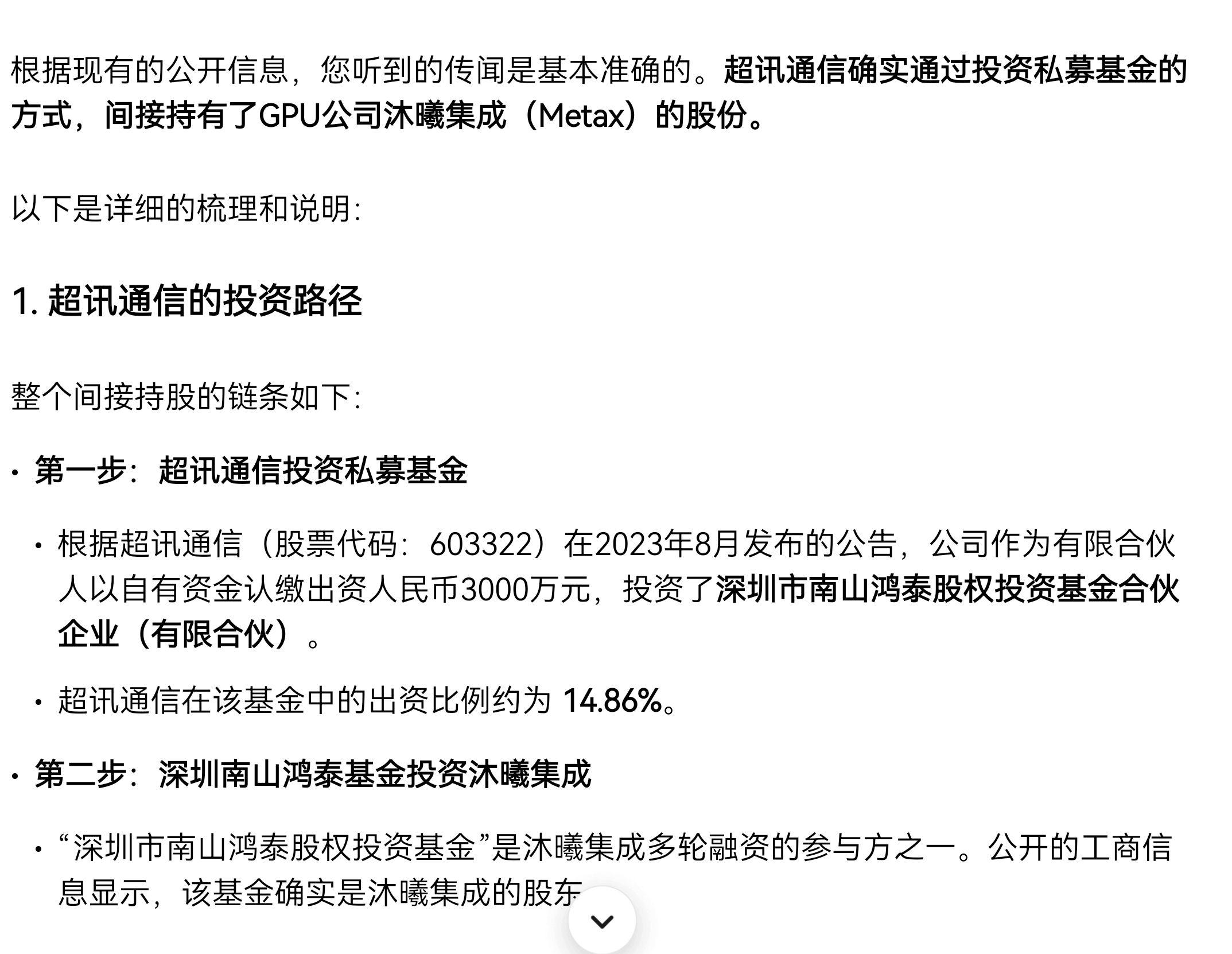 1.超讯有间接少量持股2.超讯占沐曦40%左右的业绩3.两家有共同合资的公司总结
