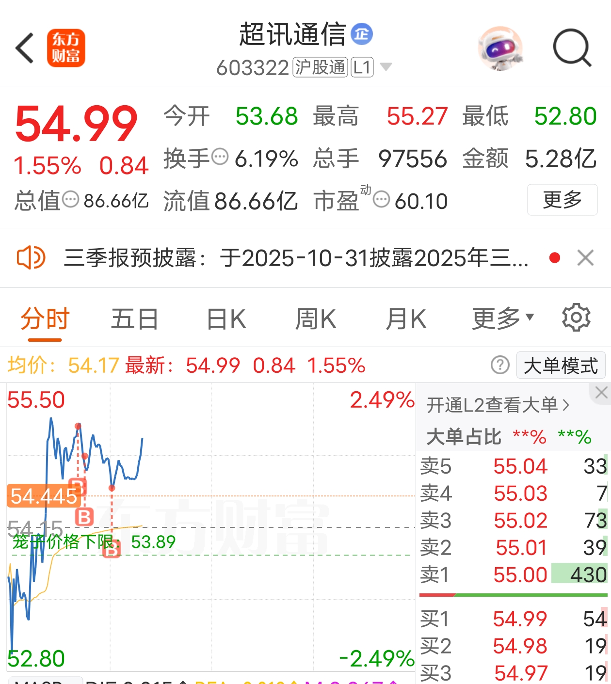 $超讯通信(SH603322)$ 看好就加仓