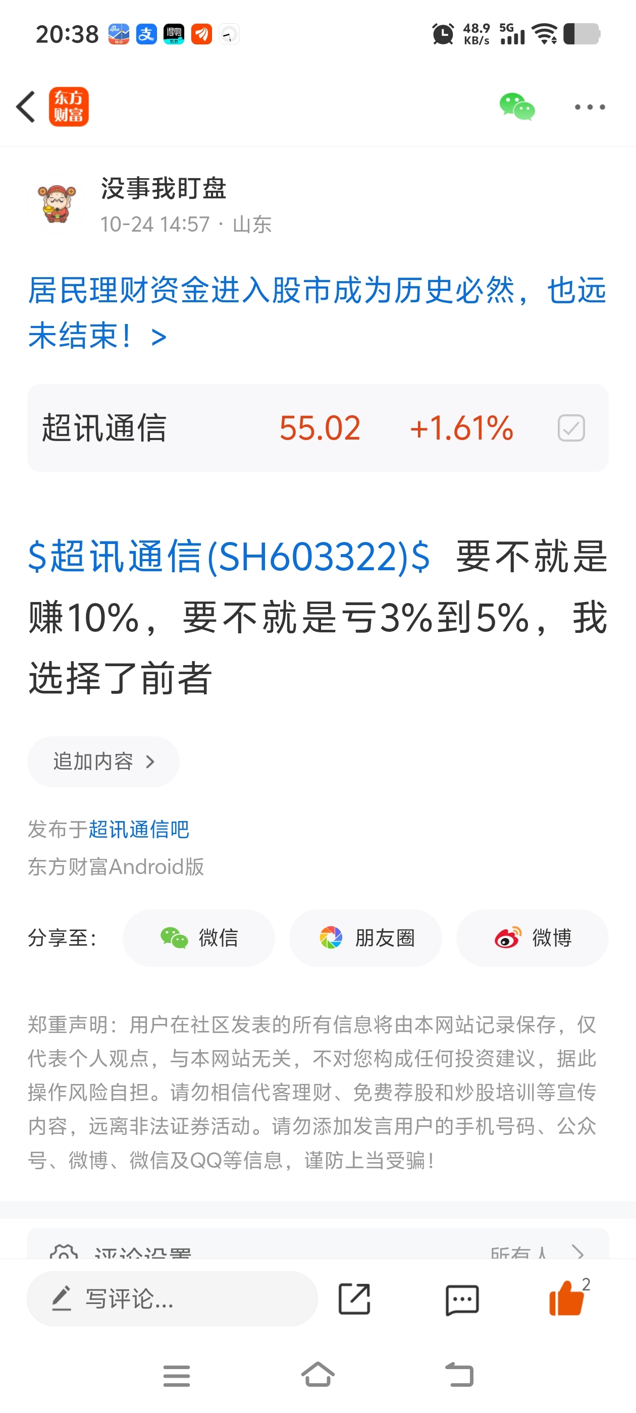 $超讯通信(SH603322)$ 不要求多了,给我半个板就行。我知道你不会这么吝啬的。