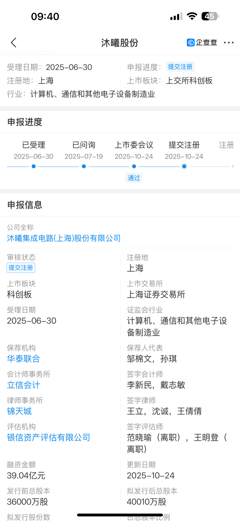$超讯通信(SH603322)$ 沐曦已通过
