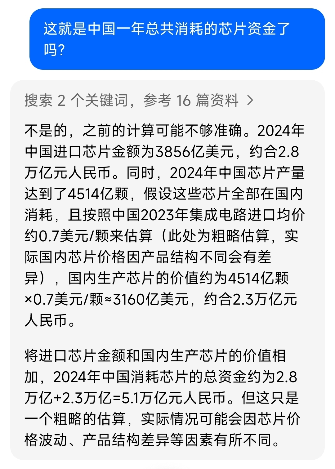 芯片一年就是五六万亿生产消耗,这市场潜力不大吗?豆包不是权威认证不可当真