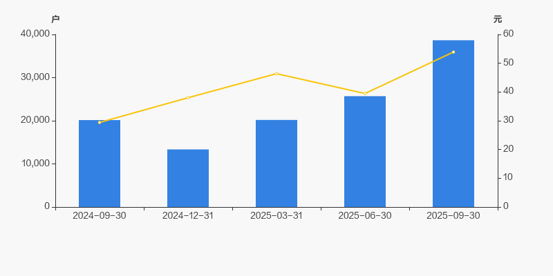 自2024年12月31日以来,公司股东户数连续3期上涨,截至目前增幅为189.61%。2024年12月31日至2025年9月30日区间股价上涨41.84%。