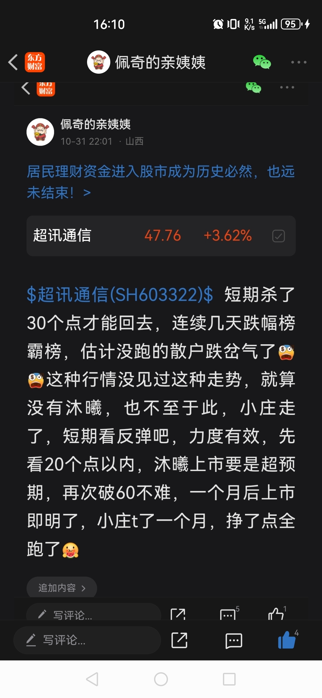 温馨提示: 1.根据《证券法》规定,禁止编造、传播虚假信息或者误导性信息,扰乱证券市场;2.用户在本社区发表的所有资料、言论等仅代表个人观点,与本网站立场无关,不对您构成任何投资建议。用户应基于自己的独立判断,自行决定证券投资并承担相应风险。《东方财富社区管理规定》