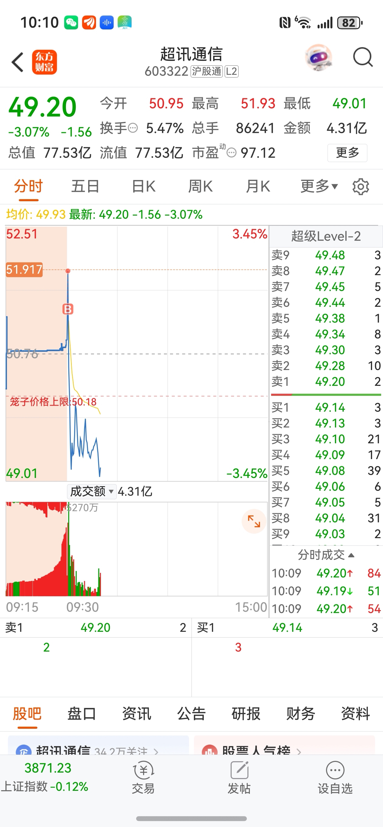 $超讯通信(SH603322)$ 今天追高了,郁闷,一个