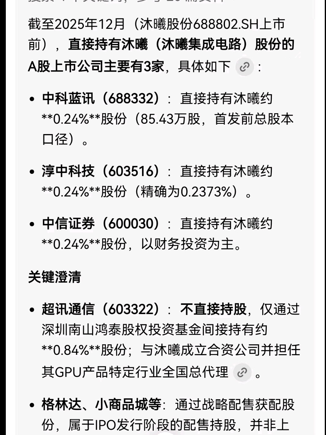 根据沐曦股份2025年10月24日发布的招股说明书,超讯通信直接持有沐曦股份8%的股权。