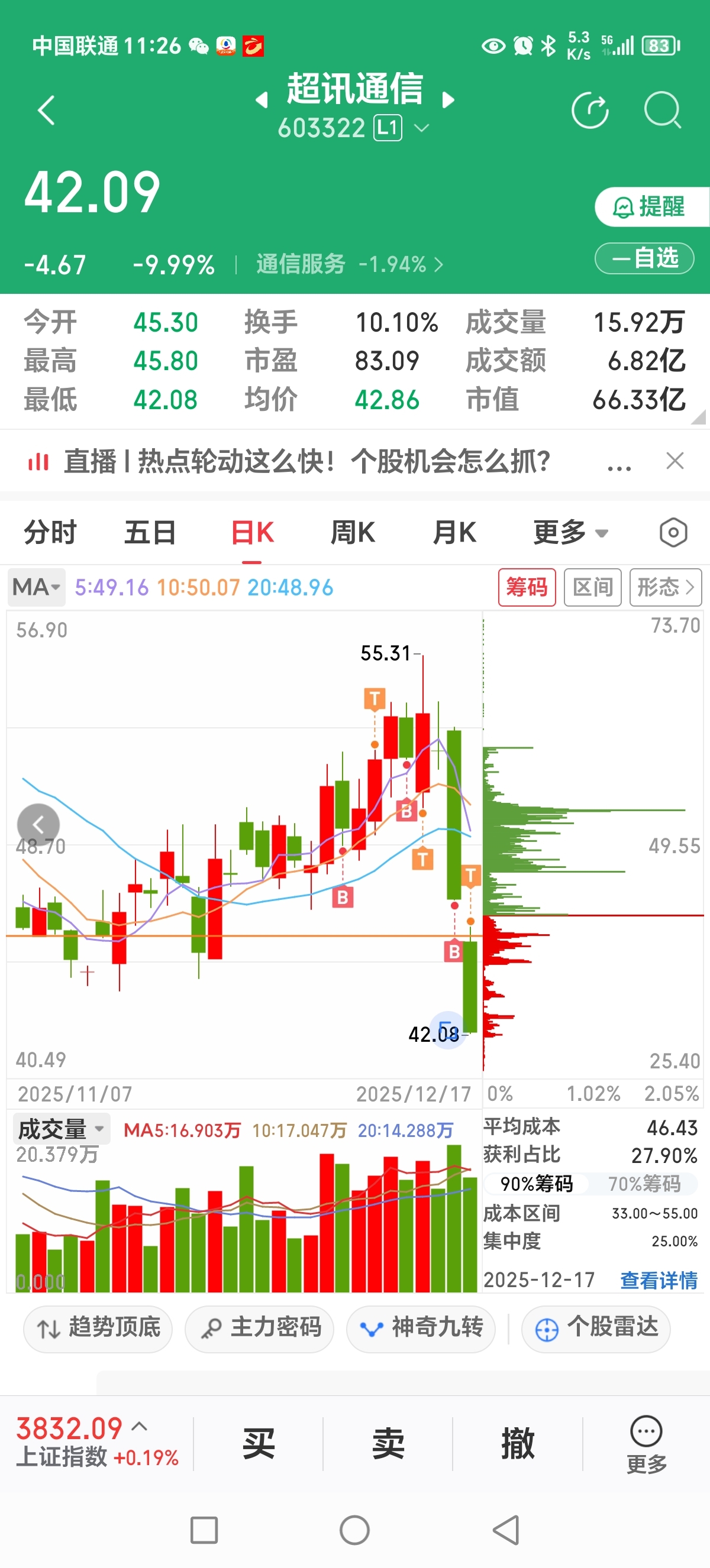 不怪你,我怪我自己,昨天尾盘还加仓进去了,从赚23个点不走到现在亏14个点,真的